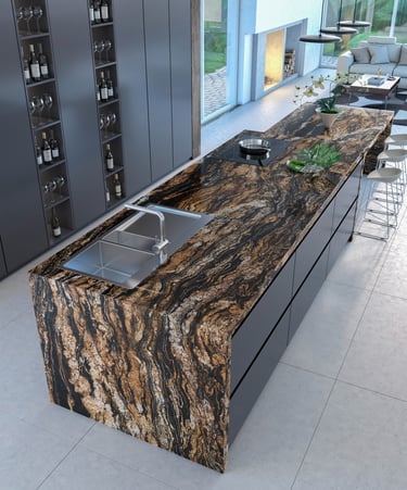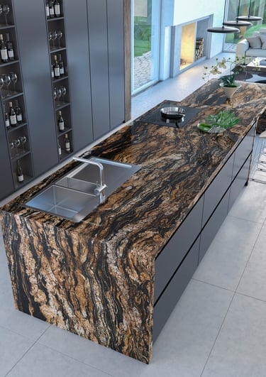 Superficie ultracompacta, resistente al calor, golpes y rayado. Ideal para cocinas modernas y proyectos de alto tránsito.